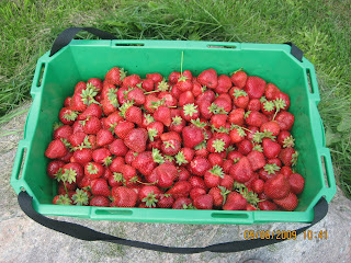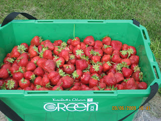 Then to top it all off we received an email telling us that as members we could come up and pick strawberries for $1 per pound………….WOW what a steal. $1 per pound for local organic strawberries, count me in. I have made two trips to the farm with my son and both days we picked 25 pounds of strawberries in under 45 minutes. So you ask Lisa what the heck are you going to do with 50 pounds of strawberries? Well let me tell you. I have bagged almost all of the berries and they are now sitting in my freezer waiting for us to enjoy them in our morning smooties this fall and winter. We will also be able to enjoy them in our breakfast scones.
